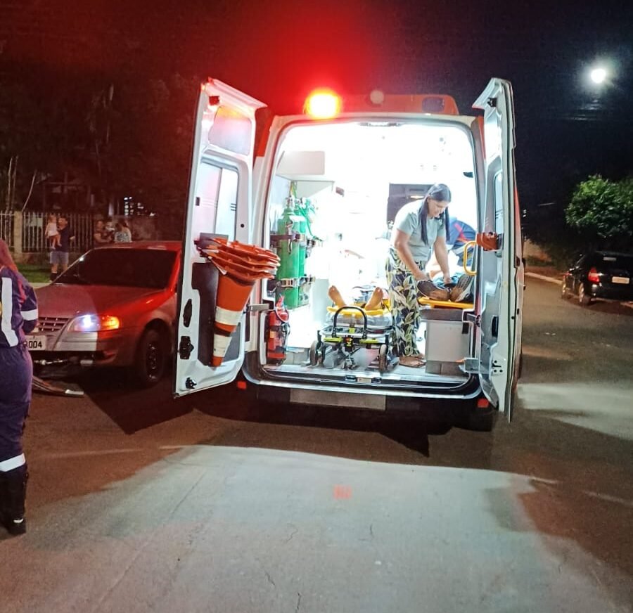 Adolescentes em ciclomotor avançam preferencial, são atingidos por carro e ficam feridos em acidente no centro de São Gabriel do Oeste