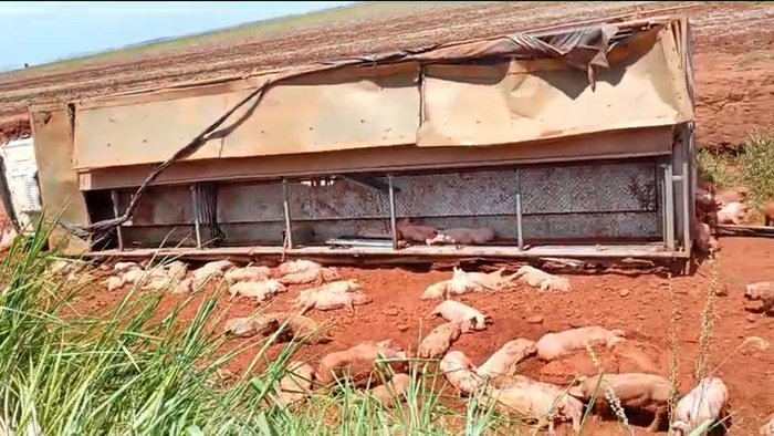 Com o tombamento, dezenas de leitões morreram no local e outros ficaram feridos.