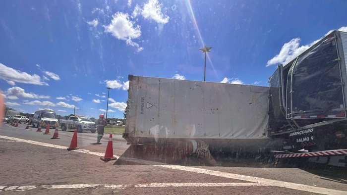 Acidente envolvendo dois caminhões foi registrado na manhã desta quinta-feira (8) na rotatória da BR-163, em Campo Grande. Até o momento, não há confirmação de feridos.