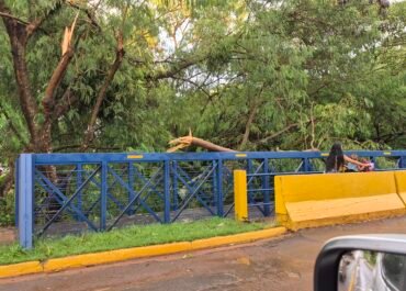 Já na Rua Gaivotas, nas proximidades do Parque Aquático, um poste de energia elétrica caiu, levando à interdição de um trecho da via. Equipes da Energisa estavam no local avaliando os danos.