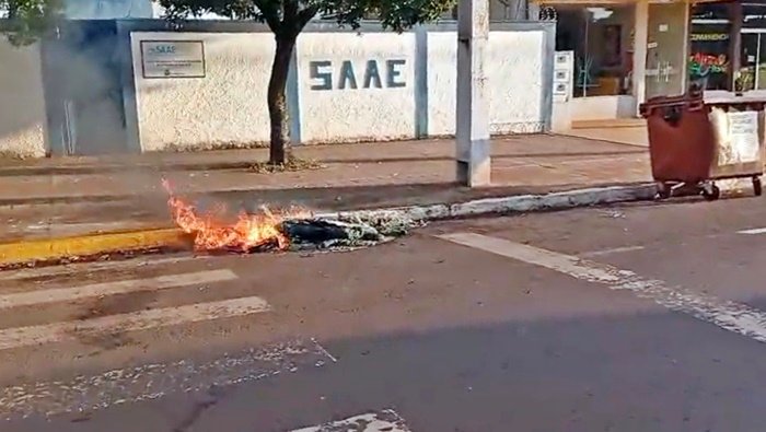 Contêiner da coleta seletiva é incendiado e destruído na região central de São Gabriel do Oeste