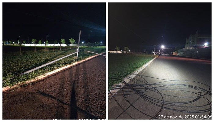 Segundo a PM, o denunciante relatou ter visto os suspeitos carregando rolos de fios e objetos parecidos com enfeites de iluminação. Ele também informou que um poste recém-instalado pela Prefeitura havia sido derrubado e estava com a fiação exposta.