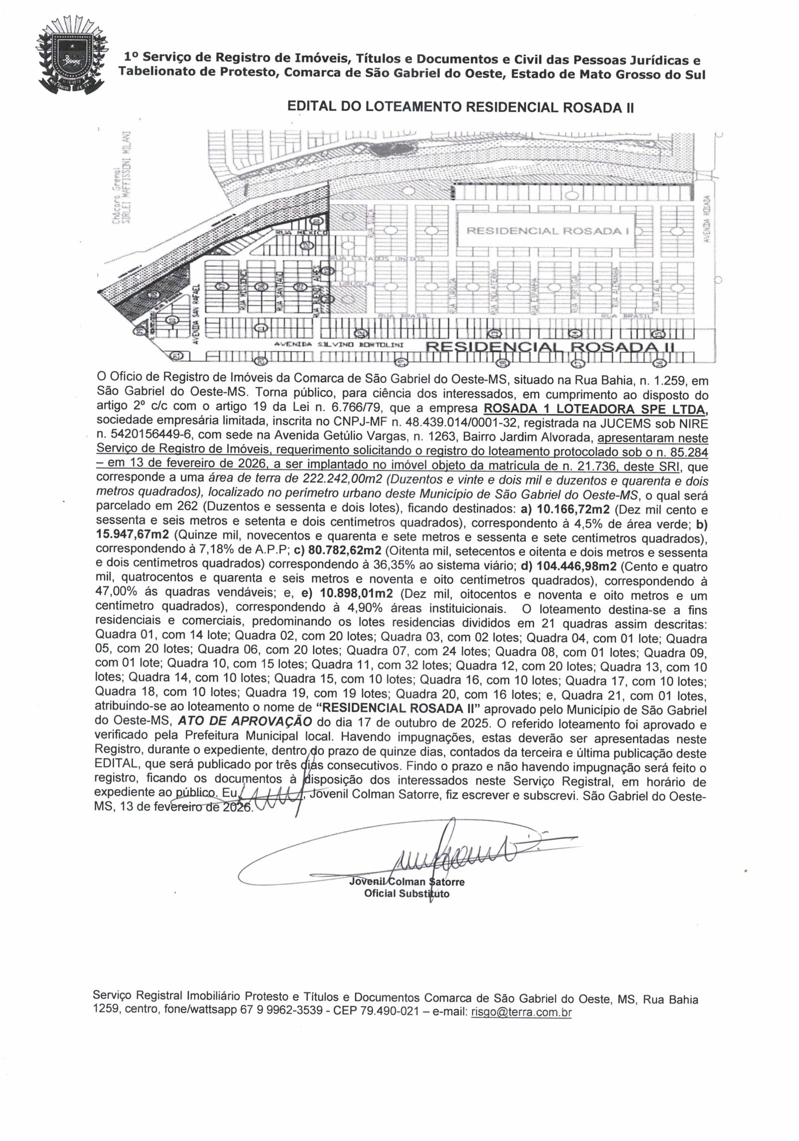 Edital do Loteamento Residencial Rosada II