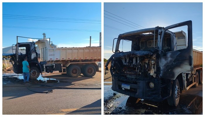 Um caminhão basculante pertencente à Prefeitura de São Gabriel do Oeste teve a cabine completamente destruída por um incêndio na tarde deste sábado (31), na rodovia MS-430, a cerca de 5 quilômetros da área urbana do município.