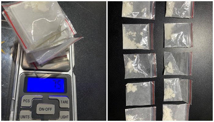 Durante a revista pessoal, nada de ilícito foi encontrado com o suspeito. No entanto, ao inspecionar o interior do automóvel, os policiais localizaram um compartimento oculto sob o console do painel, onde havia uma meia preta contendo 10 porções de cocaína, totalizando cerca de 7,5 gramas da substância.