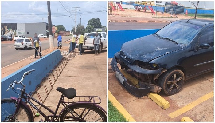 Mal súbito faz idoso perder controle de pálio e carro colide em muro de Supermercado em São Gabriel do Oeste