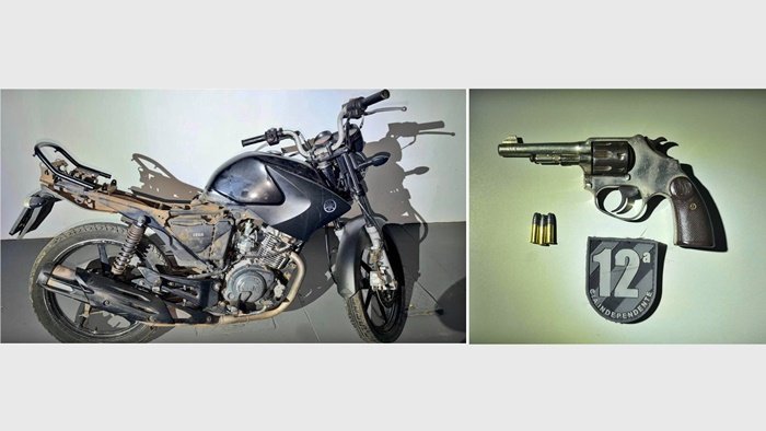 A Polícia Militar recuperou uma motocicleta furtada e apreendeu uma arma de fogo, na tarde de sexta-feira (17), em Camapuã, após denúncia anônima sobre um veículo suspeito em uma residência.