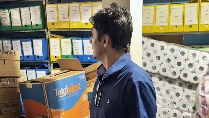 Prefeito em vistoria a área do almoxarifado. Foto: Reprodução