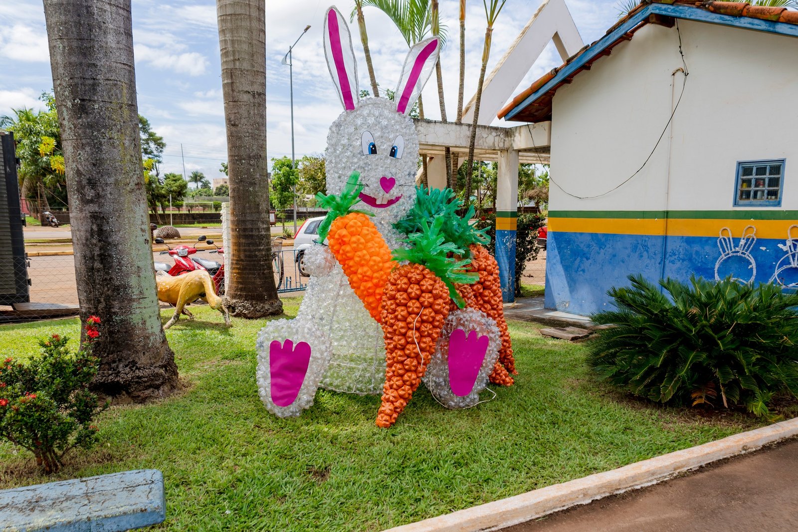 A iniciativa utiliza como base principal garrafas PET, que são moldadas e pintadas para dar vida a coelhos, ovos coloridos e outros símbolos pascais. Além de promover o espírito da data, o projeto tem o compromisso da cidade com a preservação ambiental e a economia.