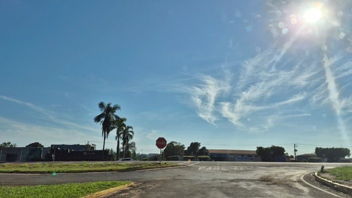 Sol e calor intenso predominam nesta quinta e temperatura pode chegar aos 33ºC em São Gabriel do Oeste.